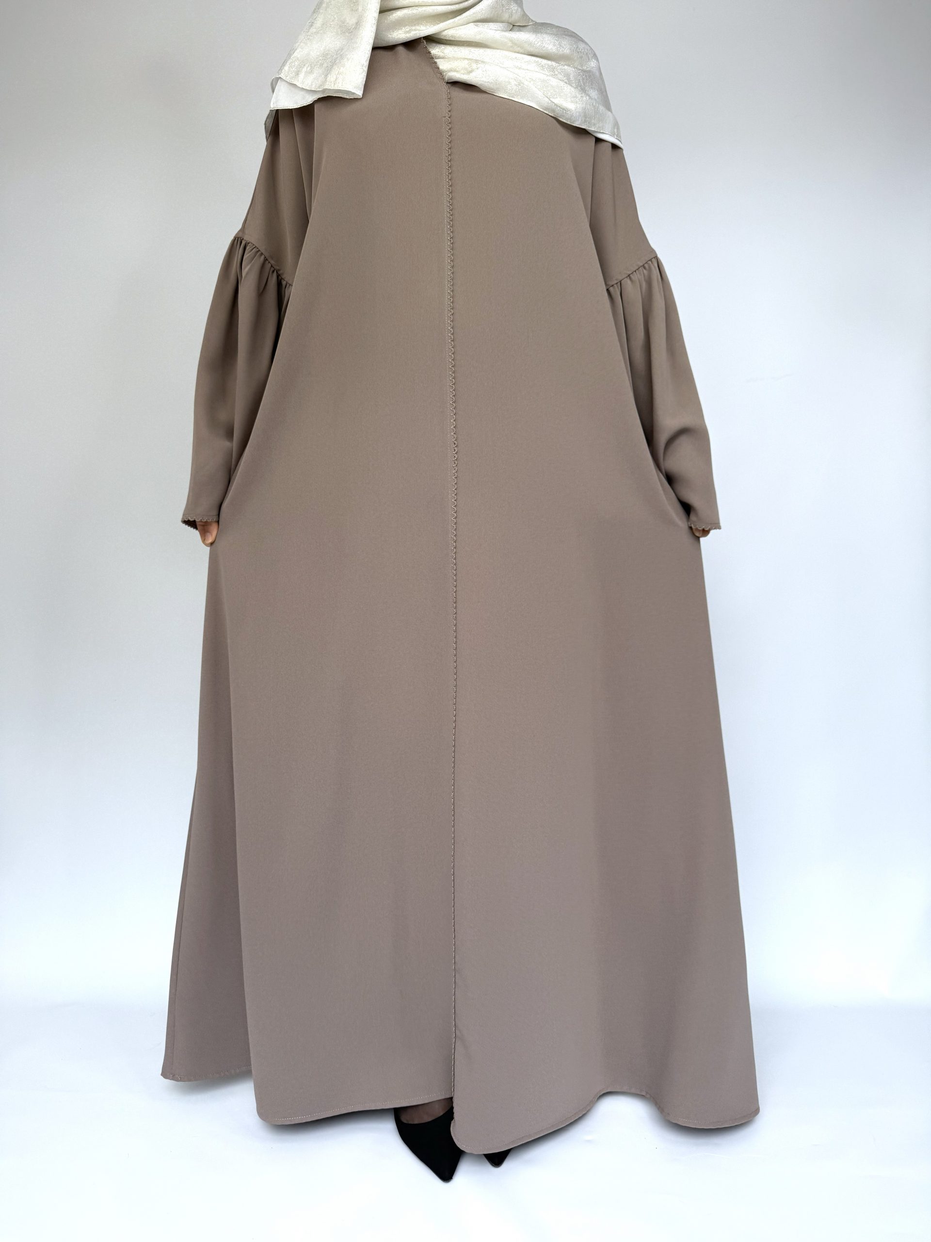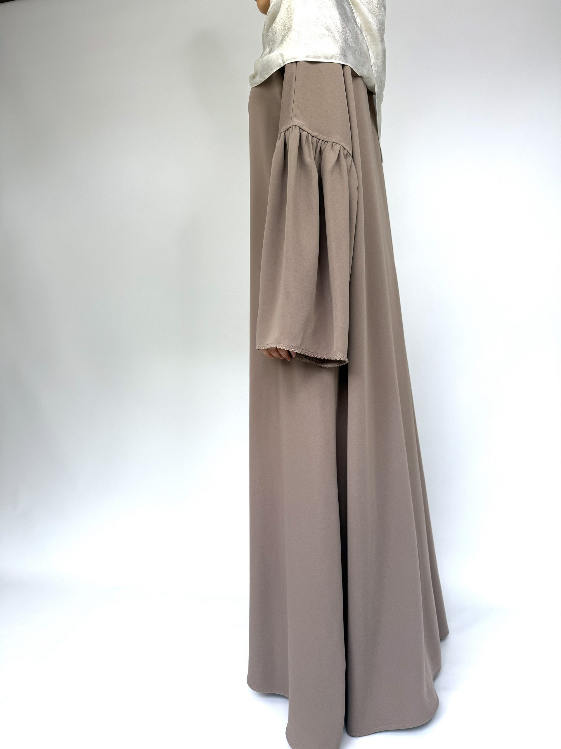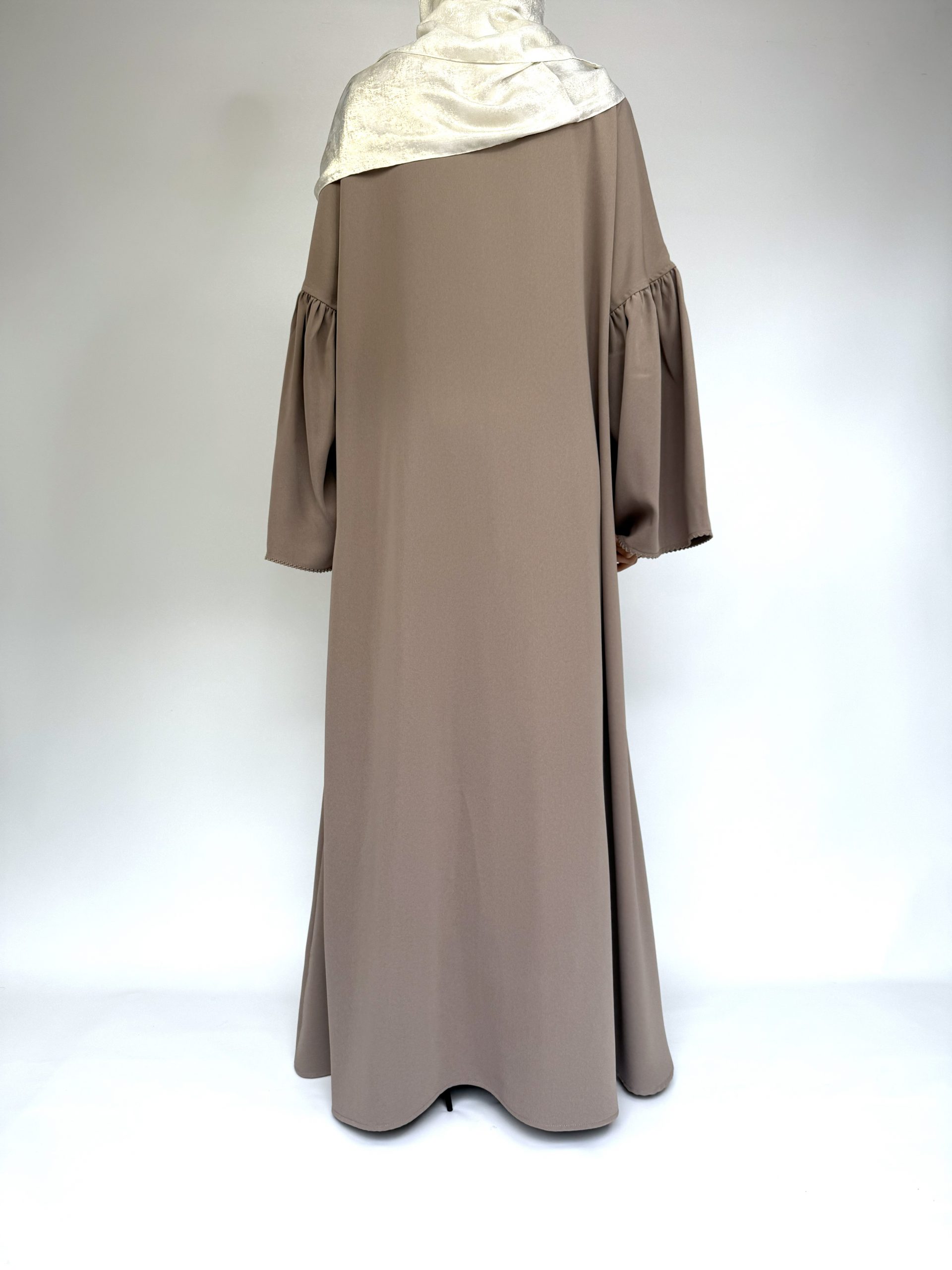 Abaya longue taupe fluide : élégance minimaliste et modernité
