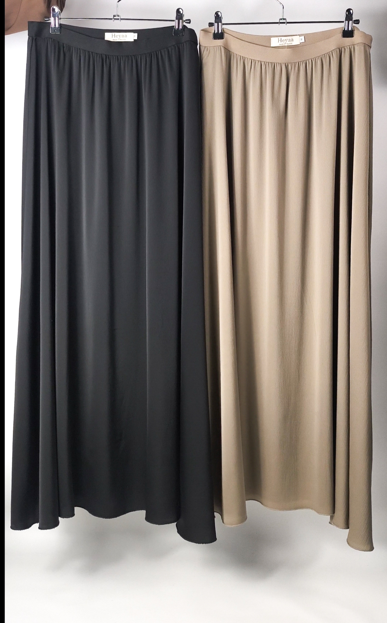 Le noir est une valeur sûre. Associé au satin fluide, il apporte profondeur, classe et féminité. Cette jupe s’intègre facilement dans une garde-robe minimaliste, chic ou modeste.