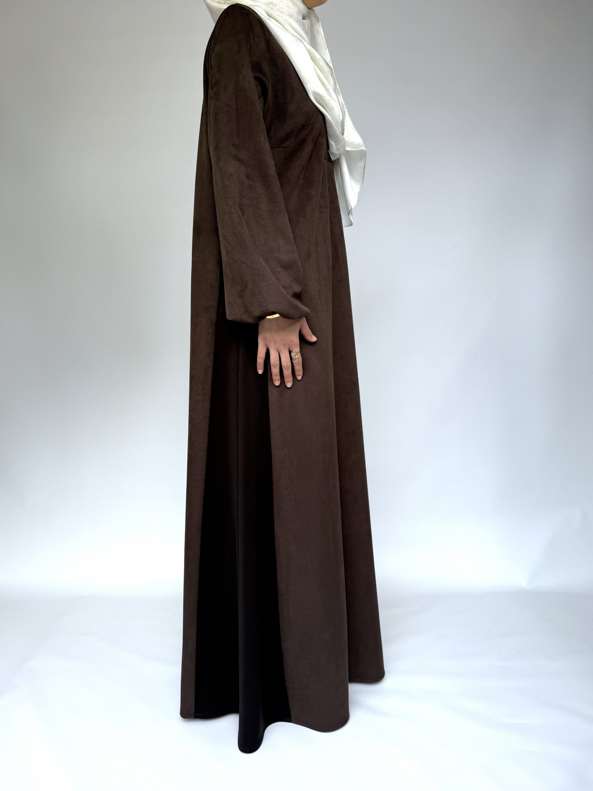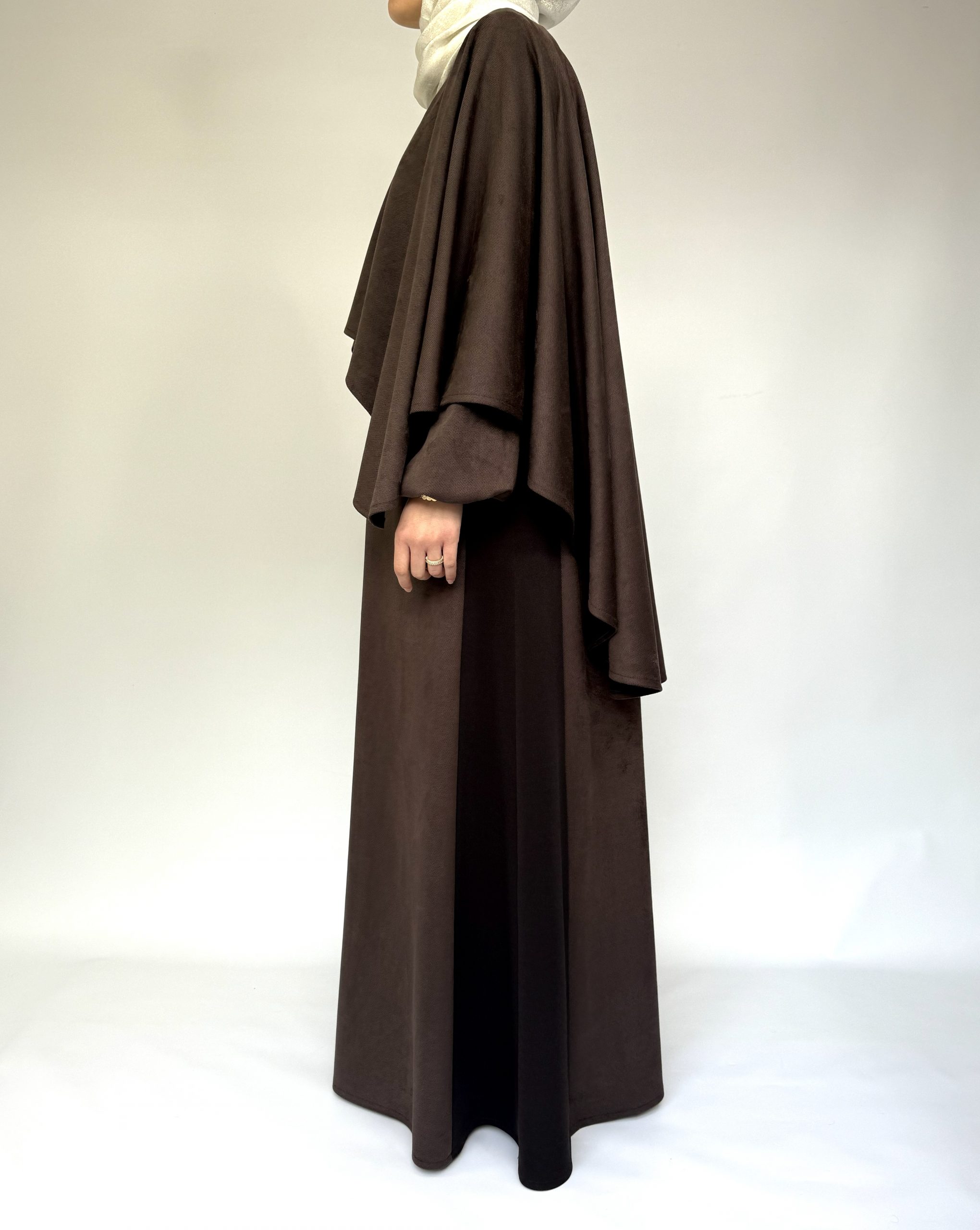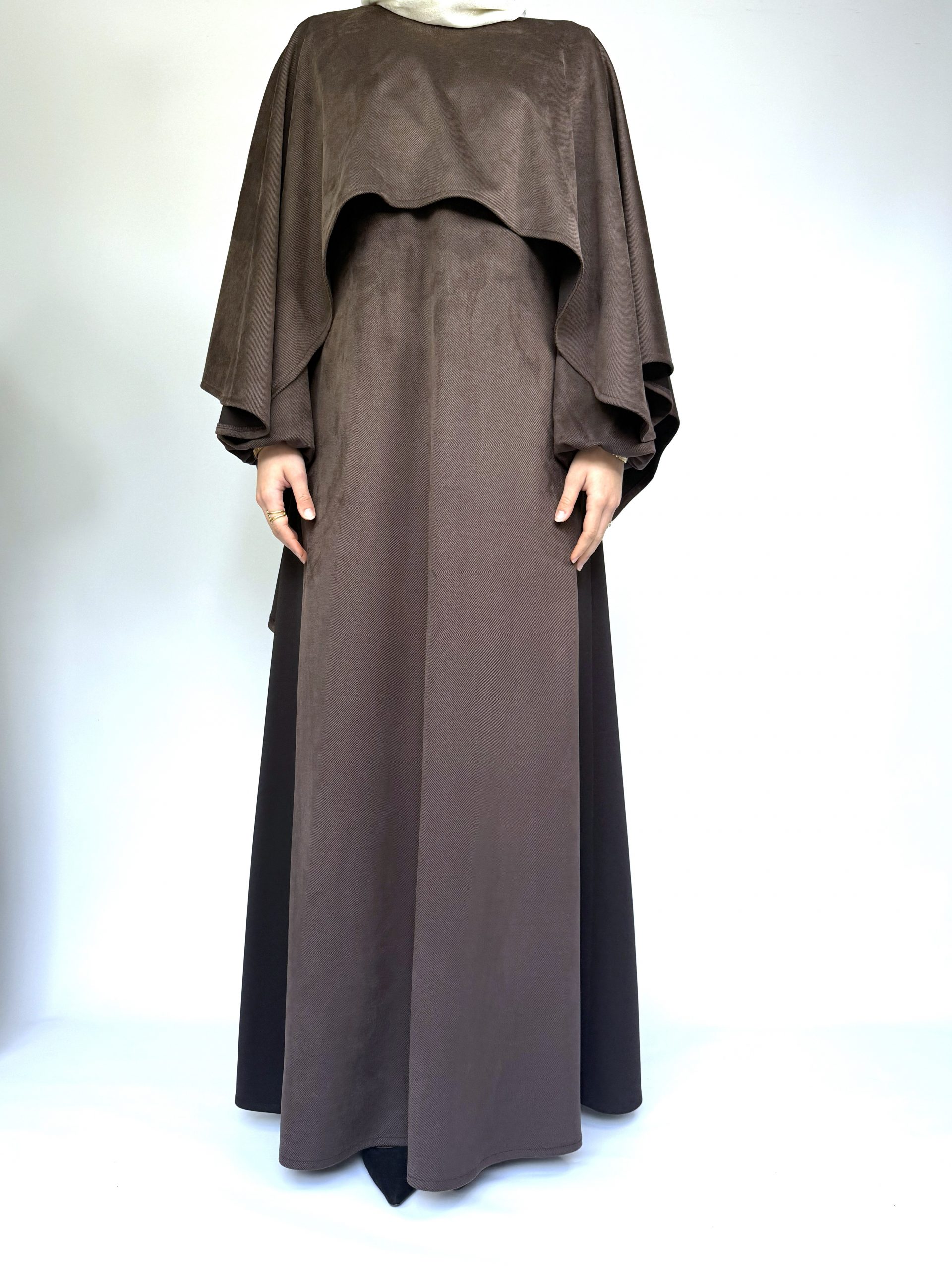 L’Ensemble Velours est composé d’une robe longue en velours marron et de sa cape assortie vendue séparément dans l’ensemble. Conçu pour allier élégance pudique et praticité, il accompagne les mamans dans leurs occasions spéciales comme dans leurs moments du quotidien.